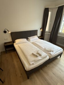 Einzelbett oder Doppelbett-Gemeinschaftsbad- Eigenes Waschbecken im Zimmer-TV